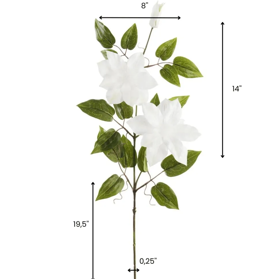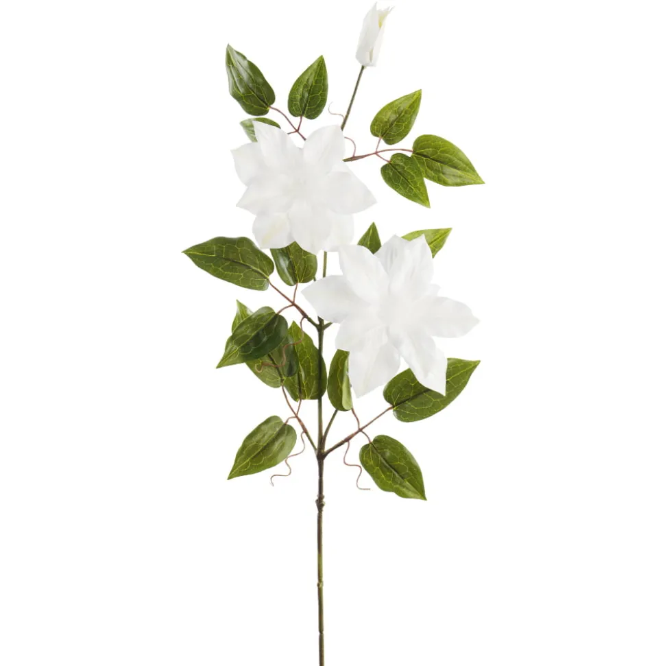 Artificial white clematis, 33,5''. Nothing rivals the beauty of the clematis flower! This white artificial one requires no watering and promises eternal freshness. Combine a few with other colorful flowers in a large glass vase.