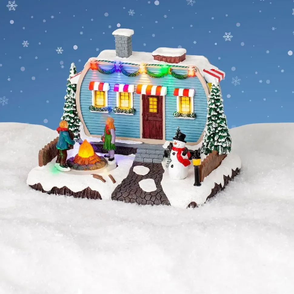 A must-have Christmas collectible for camping and outdoor enthusiasts! Delicate evergreen trees surround the mobile home, their branches dusted with a hint of snow, while a miniature campfire adds a touch of authenticity and invites imaginary campfire storytelling sessions. Hand-painted piece. Movement effect. Multicolored lights. Batteries required: 3 x AA.