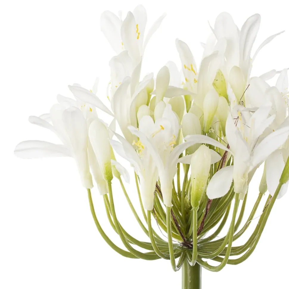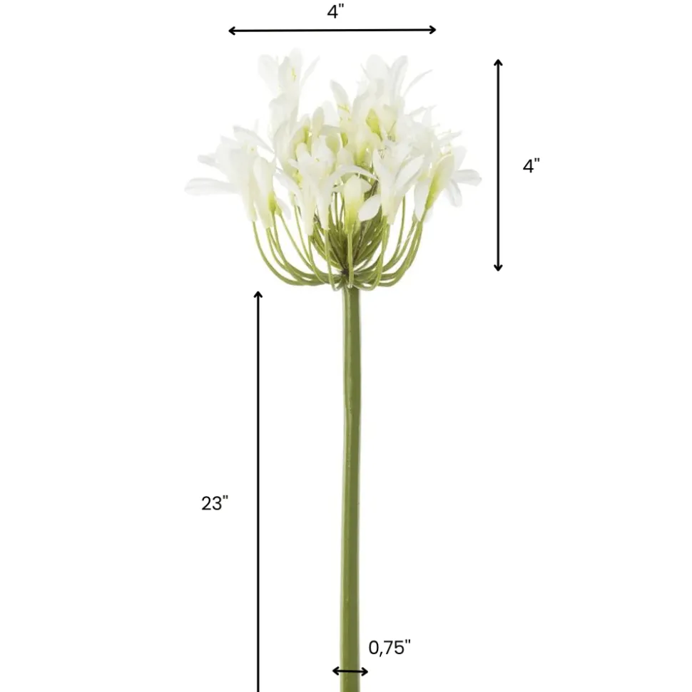 Agapanthe blanche artificielle, 27″. Laissez-vous séduire par l’élégance de cette vivace qui a tout l’air d’être vraie ! Vous pourriez aussi en faire un bouquet en la jumelant avec des fleurs d’agapanthe bleue.