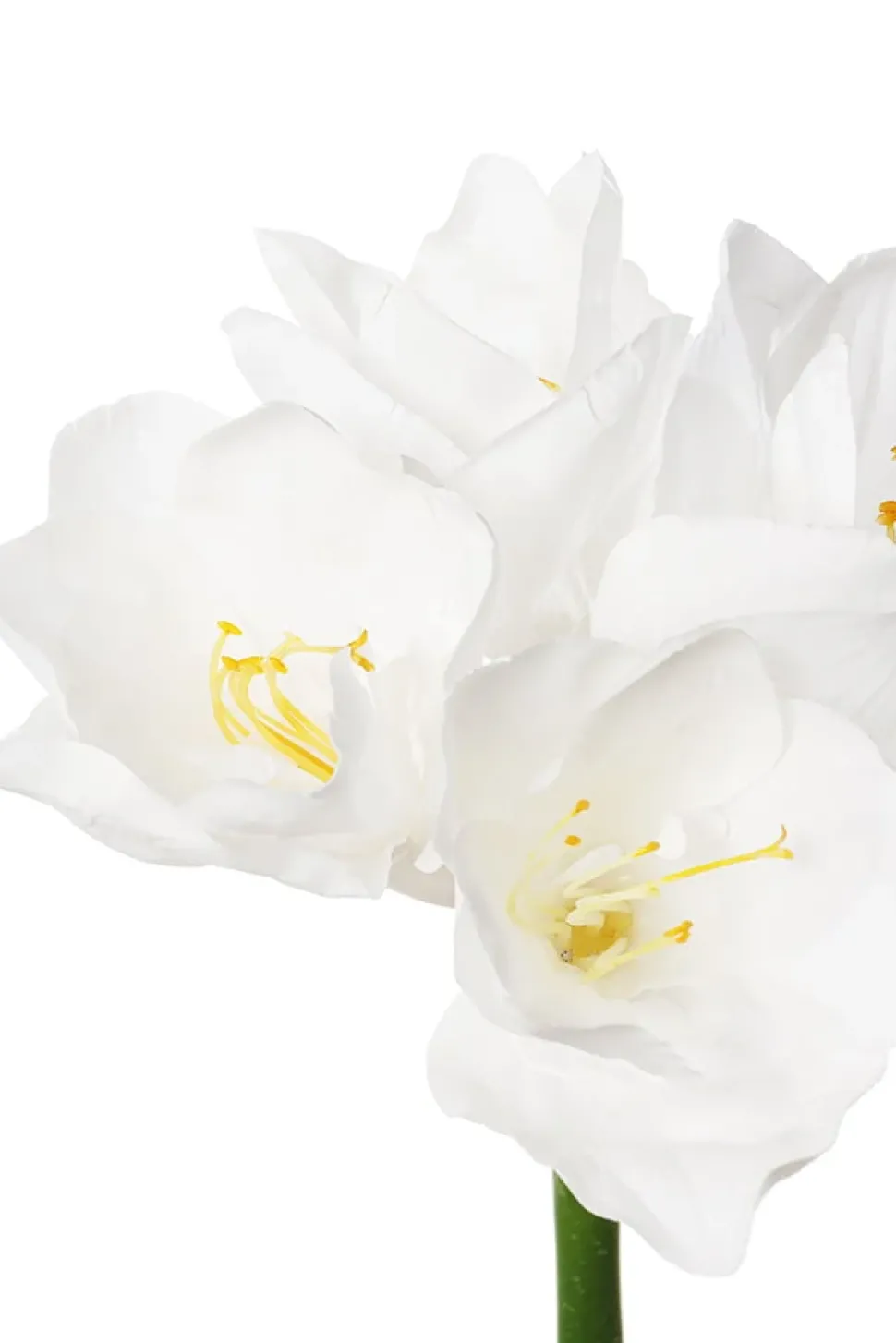 Amaryllis blanche, 31″. Pour une décoration festive originale, pensez à ajouter des fleurs de Noël comme cette amaryllis blanche dans vos arrangements. Également disponible en bourgogne dans le même format.