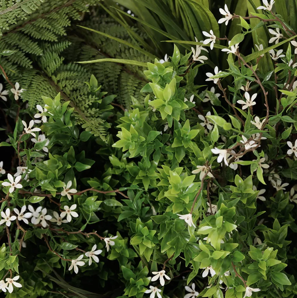 Arrangement extérieur artificiel, herbes et petites fleurs banches, 36 x 44″. Cette jardinière basse pour l’extérieur est composée de petites fleurs blanches et de feuillage mixte pour un décor épuré et moderne! Ce modèle vient dans le pot montré sur la photo, dans lequel une couche de roche a été ajoutée afin de créer du poids à l’arrangement. Les végétaux ont ensuite été fixés dans l’uréthane, puis une couche finale de paillis a été ajoutée en guise de finition.