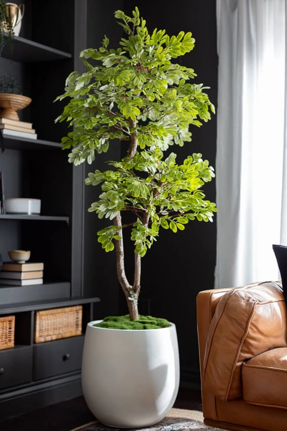 Exclusive Véronneau creation. Make your home decor the most inviting one with this acacia tree! Made from recycled natural trunk, this artificial plant is sure to enhance to your living room. This indoor artificial tree is a work of art in its own right, with its natural wood trunk! Let it decorate the corner of your office or common area.