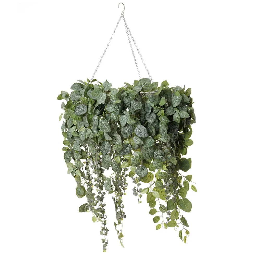 Whether it’s to enhance the entrance to a business or an office, this artificial plant suspension is sure to catch the eye of passers-by! The round metal frame inside measures 18 inches in diameter. Simply hang it from the ceiling or from a wall hook made for hanging planters!
