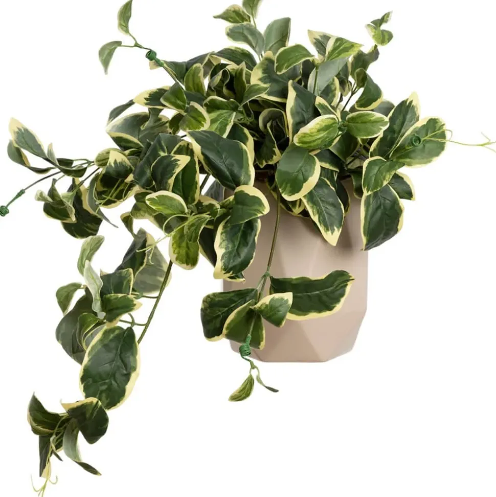 Artificial euonymus foliage in a beige vase. With its dense and textured foliage, this tabletop plant will bring a breeze of freshness and vitality to your decor, while staying subtle! Find a spot for it in the bookshelf or on an accent table.