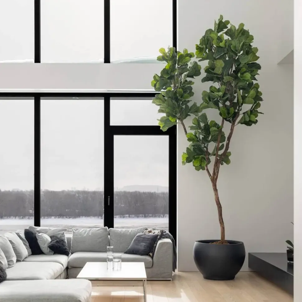 Exclusive Véronneau creation. The ficus lyrata is an ornamental tree very often used as a houseplant for its tropical side. It comes from the fig family. This one is artificial, with very realistic foliage. Enjoy a maintenance-free plant perfect for both large and small spaces! This is an indoor artificial tree that goes wonderfully with all styles of decor. Plus, the fiddle-leaf fig is the Instagram community’s favorite plant! This one is artificial and handmade, so you can enjoy a maintenance-free indoor tree.