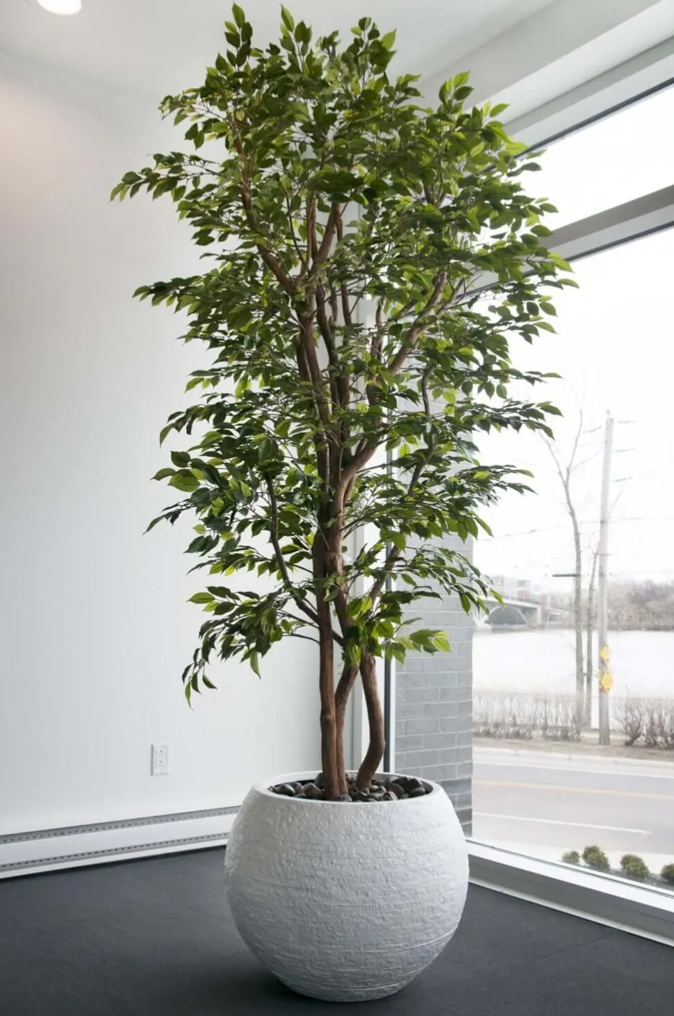 Exclusive Véronneau creation. The Mini Ficus is charming with its narrow, sparse foliage. This handcrafted tree will make your decor both relaxing and colorful! If you have enough space in your home, get yourself this potted ficus. You can also incorporate this artificial tree into a narrow room with high ceilings, thanks to its narrow shape.