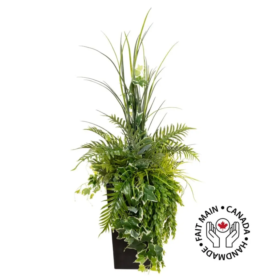 Artificial plant outdoor planter, 52″. Nothing could be easier than a beautiful planter of artificial plants to green up your outdoor design! To preserve the color of your plant even longer, spray a UV protector for artificial plants at the beginning of each season.