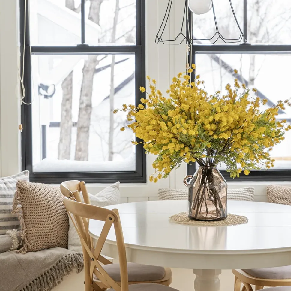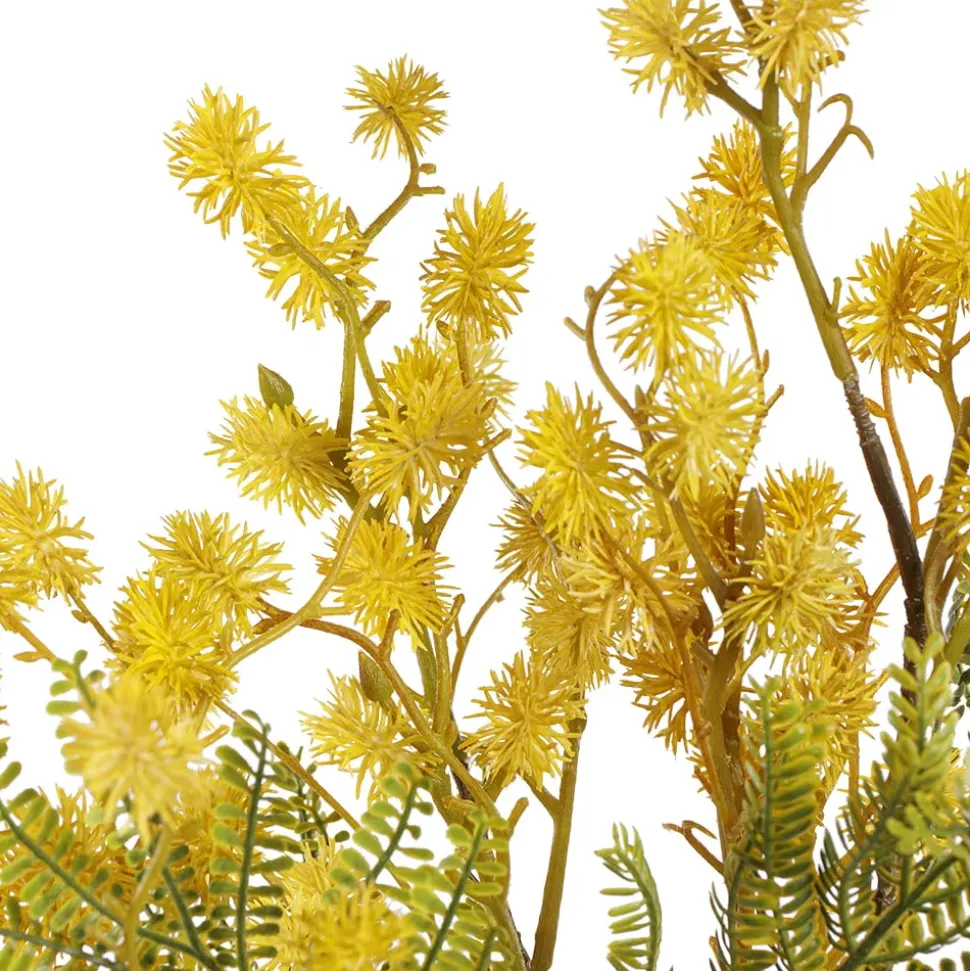 Yellow artificial mimosa bouquet, 28''. What a better way to brighten up your day than with a beautiful flower bouquet ? With its yellow color, the mimosa will bring a colorful punch to any boring decor.