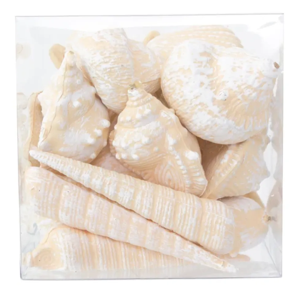 Box of assorted shells. For a seaside decor, these decorative shells will be of great use. You can place them anywhere in the bathroom, next to a candle or on a wall shelf.