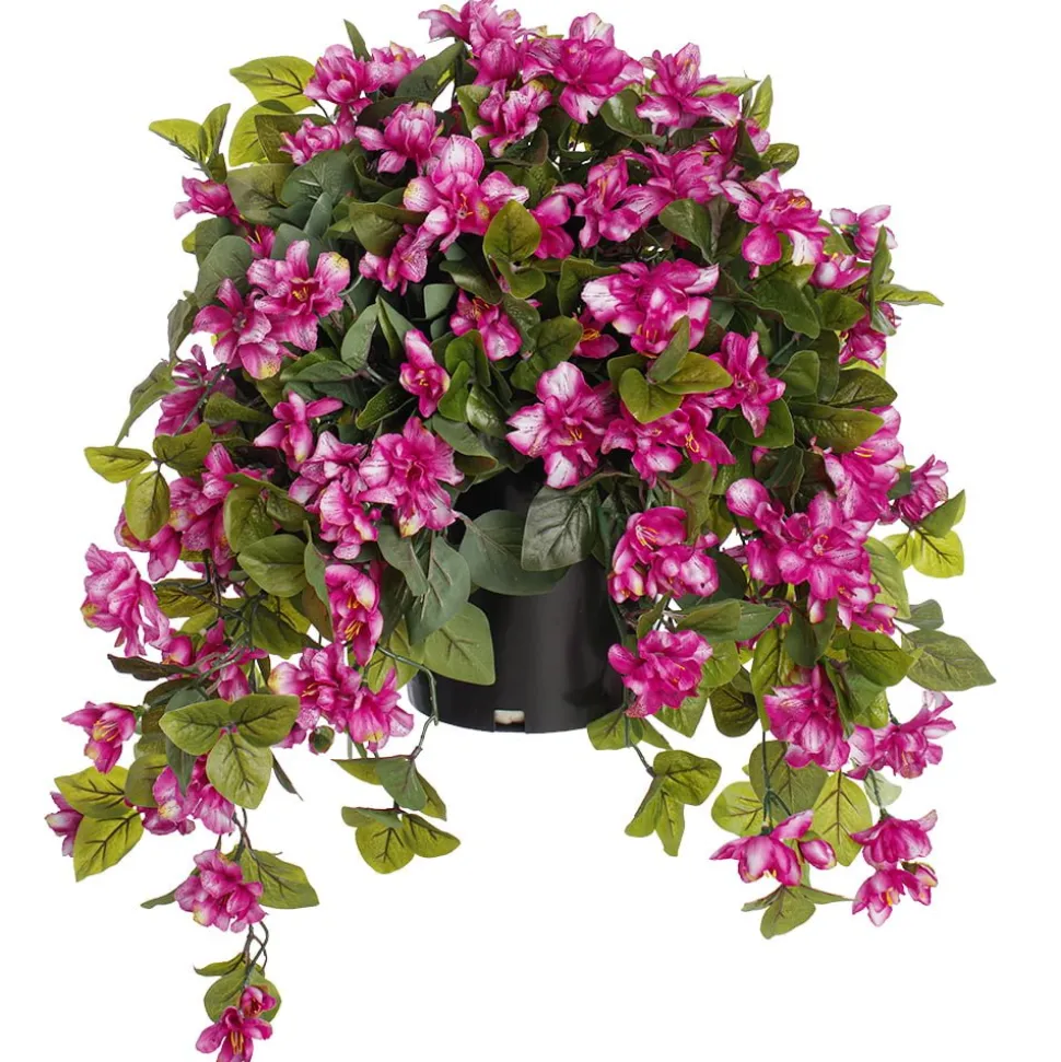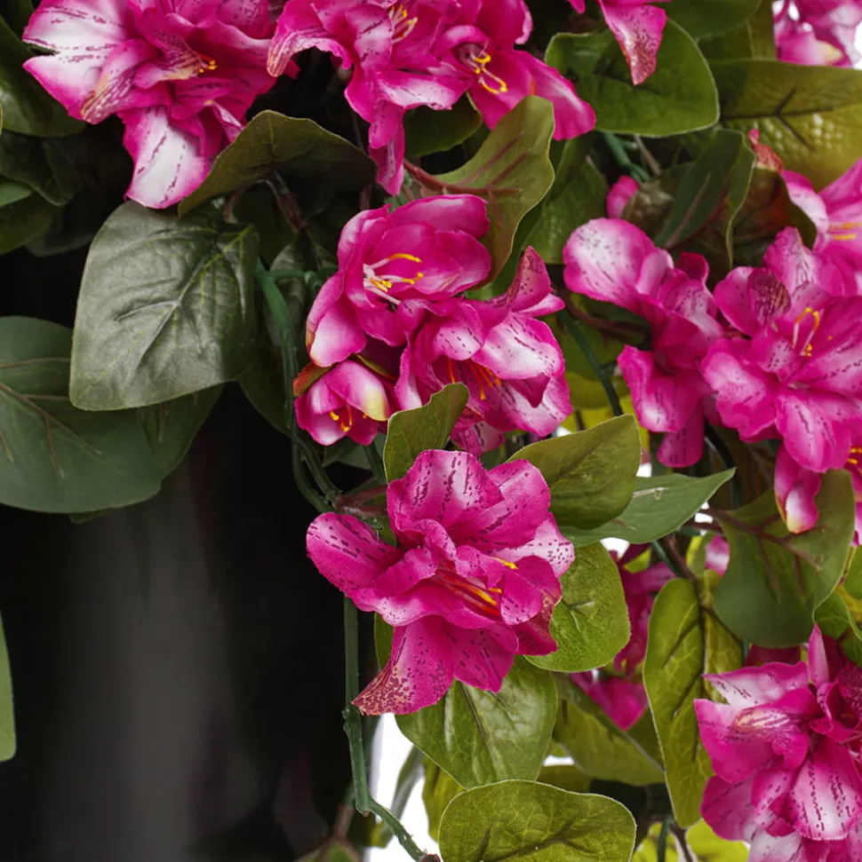 Ces fleurs d’azalée sont parfaites pour un aménagement extérieur coloré, tout en douceur et légèreté. Même si ce plant vient dans un pot de culture en plastique, vous pouvez bien sûr vous amuser en le plaçant dans un cache-pot à motif ou texturé. Laissez son magnifique feuillage retombant descendre sur le pot !