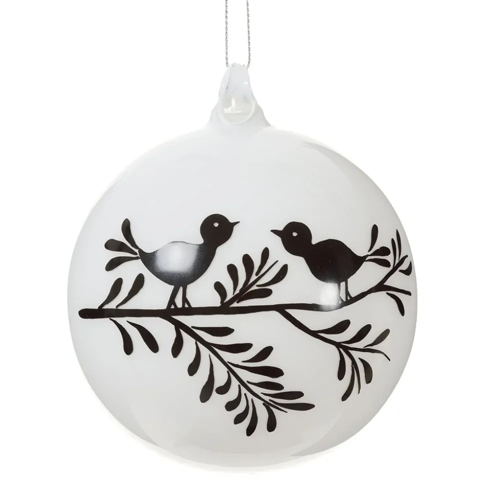 Fall in love with this ornament featuring adorable little birds! For a white Christmas theme, combine with white fur balls and hanging snowflakes.