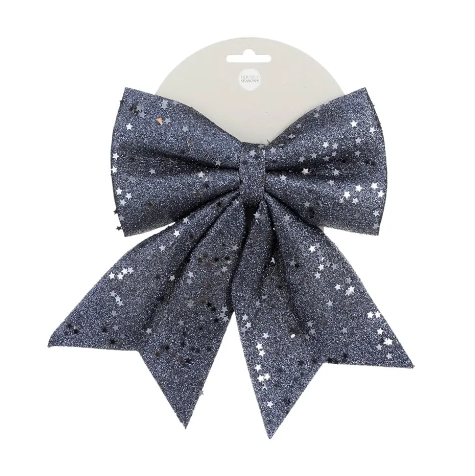 Boucle de Noël étoilée bleu nuit, 9,5 x 8″. Plongez dans un ciel étoilé avec cette boucle qui le représente si bien! Un incontournable pour décorer la pointe des branches de votre sapin de Noël, les cadeaux et les couronnes.