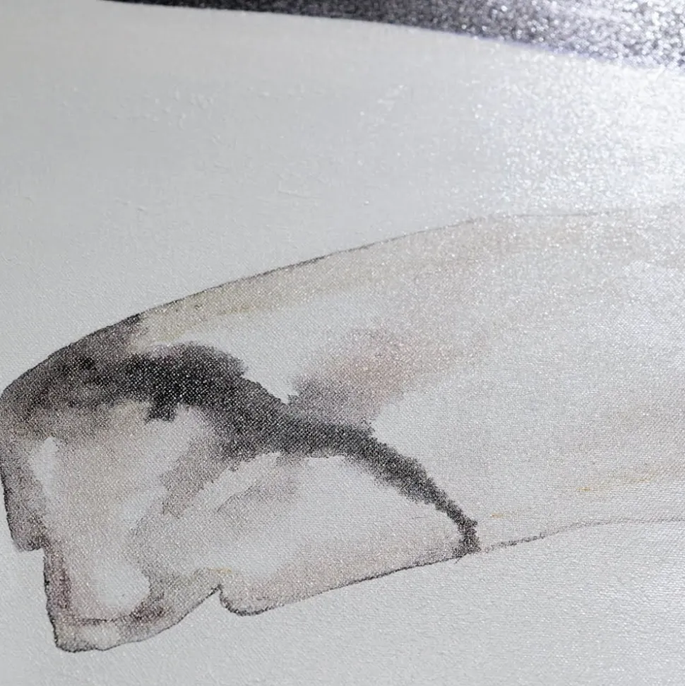 Brush stroke wall art, 24 x 36''. If your intention is to add a subtle touch of color, this printed canvas is for you! Enhanced with a few strokes of navy blue paint, this white frame has everything to make your space beautiful. Comes with black MDF frame.