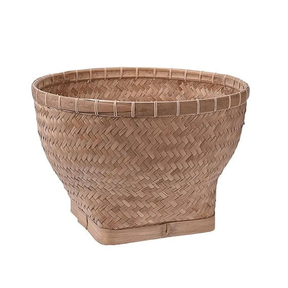 Dissimulez un pot moins décoratif en le déposant tout simplement dans ce cache-pot en bambou. C’est sans contredit l’un des préférés de la saison!