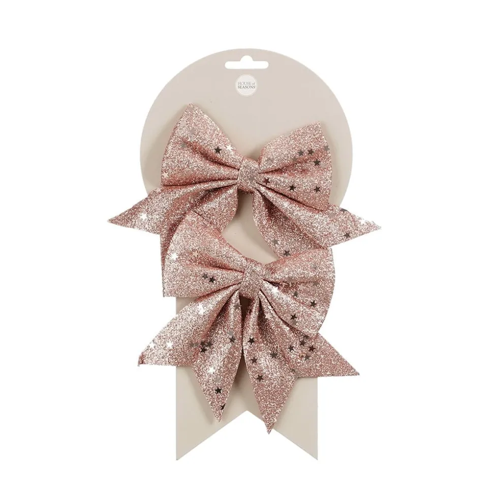Pink bows with silver sparkles, 5″. Set of two pink Christmas bows. Decorate your gifts, Christmas trees and garlands with these adorable festive ribbons!