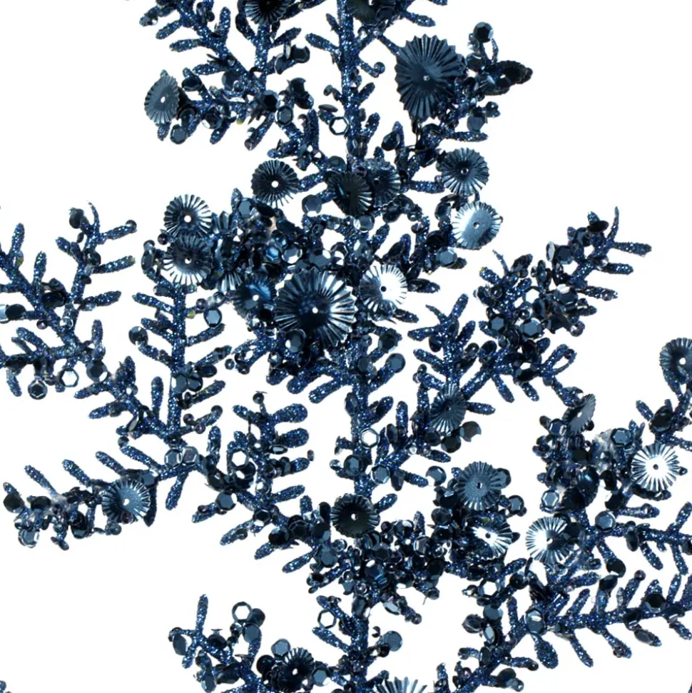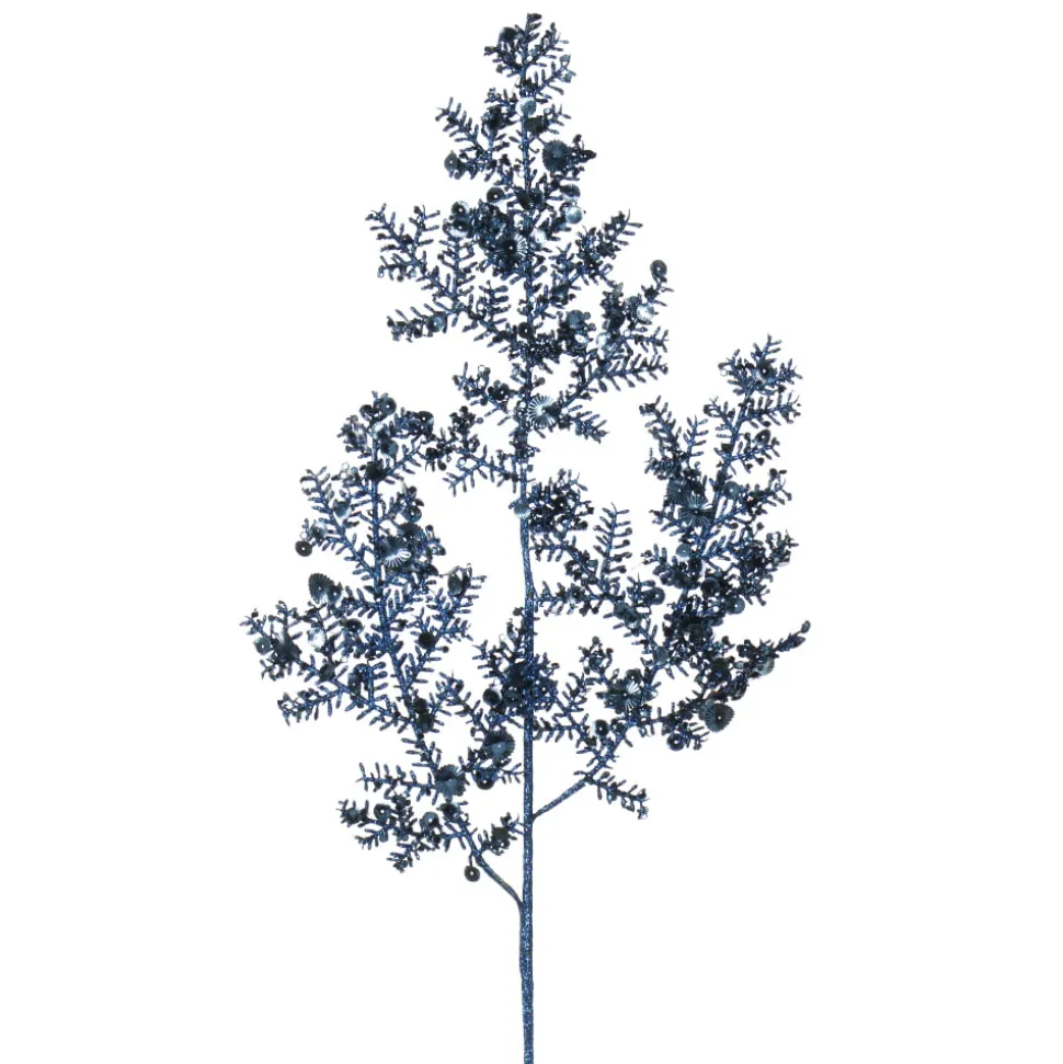 Dark blue shiny fern, 31″. This shiny Christmas stem fits very well with a white and blue holiday theme. For example, a white Christmas tree with silver and blue ornaments would make a magical winter decoration.