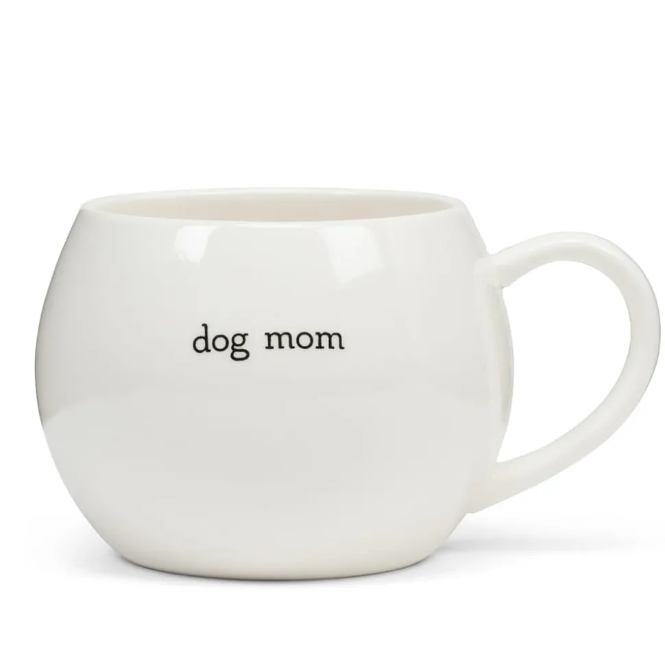 Dog mom stoneware coffee mug, 16 oz. Brighten any dog owner’s day with this elegant round mug. Made of stoneware, this large 16 oz white mug features a charming message in small letters – complemented by the silhouette of a dog at the bottom of the mug! The perfect gift for Mother’s Day or a birthday. Microwave and dishwasher safe.