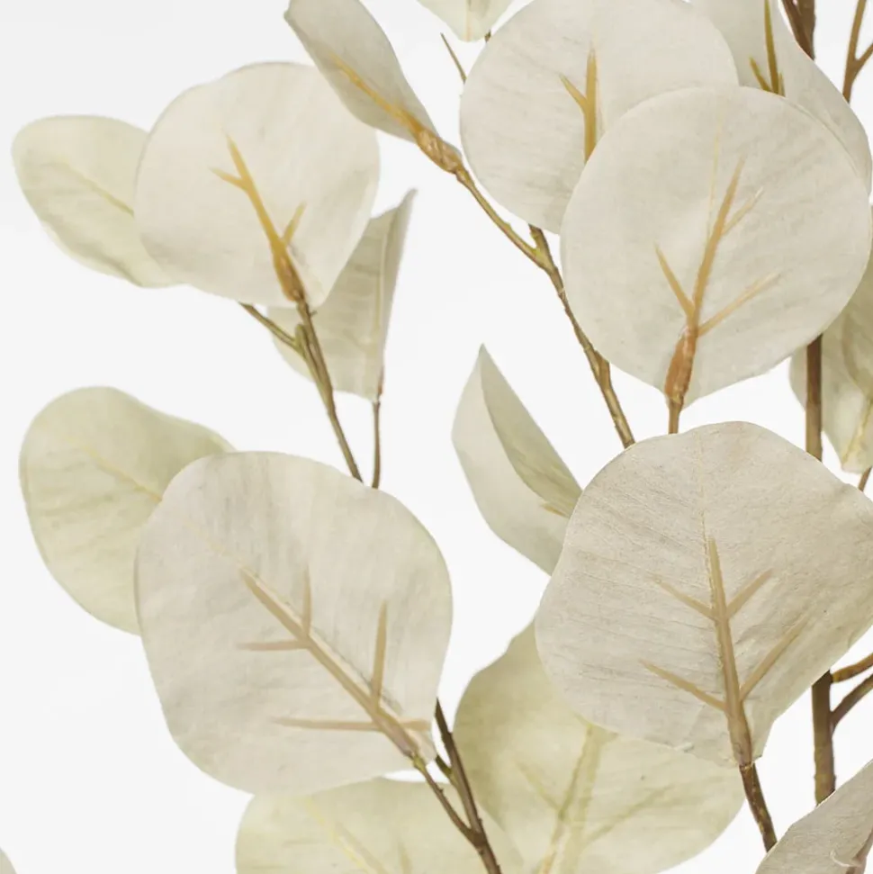 Eucalyptus beige artificiel, 34''. Cette branche artificielle sera un ornement automnal idéal si votre décor tourne autour de couleurs pâles comme le blanc, le crème et évidemment, le beige. Disponible en 2 couleurs.