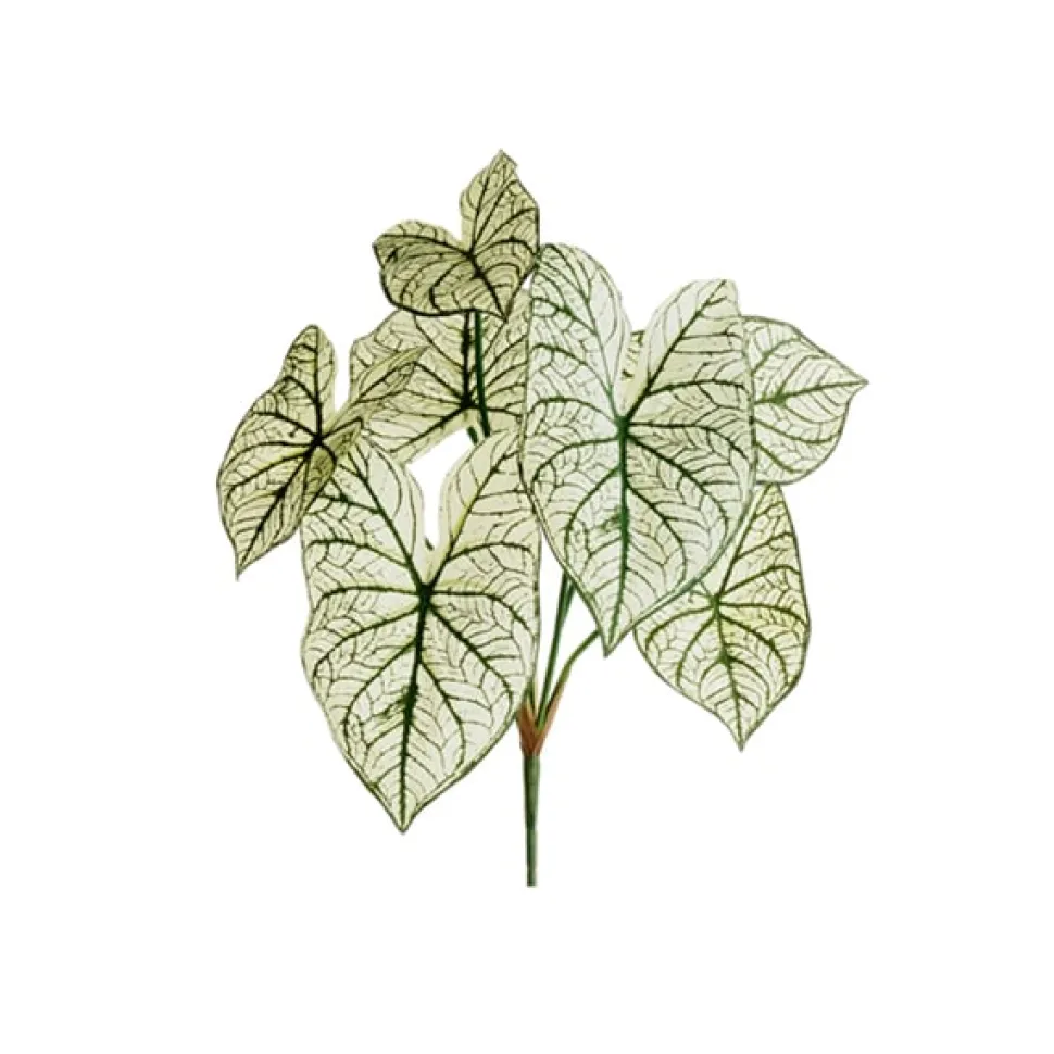 Faux feuillage de caladium de 23'' de hauteur. Ces feuilles bicolores ajouteront beaucoup de texture à votre décor! Faites-en l'élément principal de votre pot préféré ou agencez-les à d'autres feuillages!