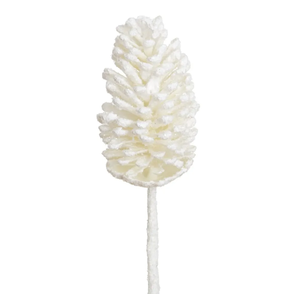 Frosted pinecone branch, 28″. Use this holiday classic in your festive arrangements. Small suggestion: mix these pinecones with purple ornaments and white baubles for a magical look to your tree.