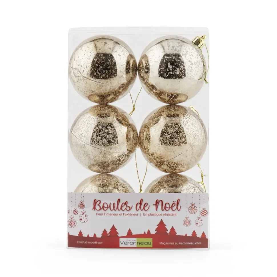 Glossy clear mercury Christmas ornaments, 3″. This box contains 6 matching ornaments. Go for a woodsy Christmas theme by hanging these lustrous ornaments! Gold complements a wide range of styles, while adding the festive touch you are looking for during the holiday season.