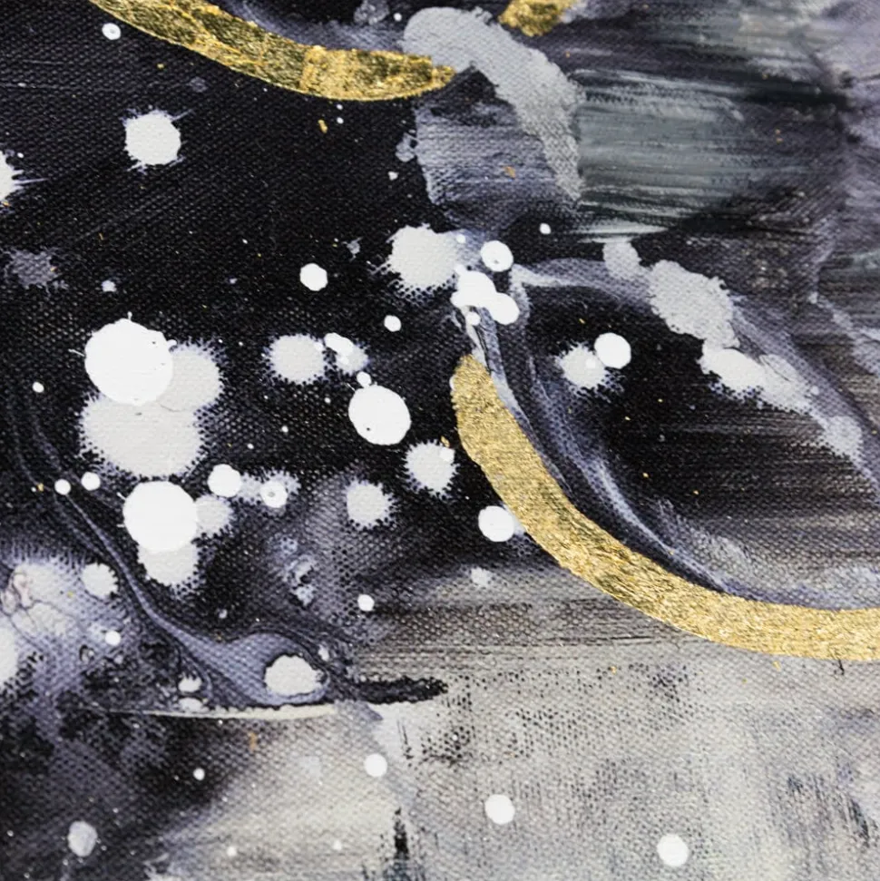 Golden bubbles abstract wall art, 32 x 47''. Does your home decor feature gold or black elements? This decorative canvas is just the thing to match it perfectly! Note that this is a printed painting on canvas with painted details. Comes with black MDF frame.