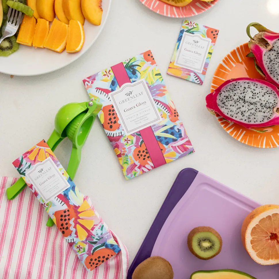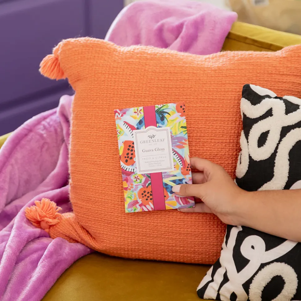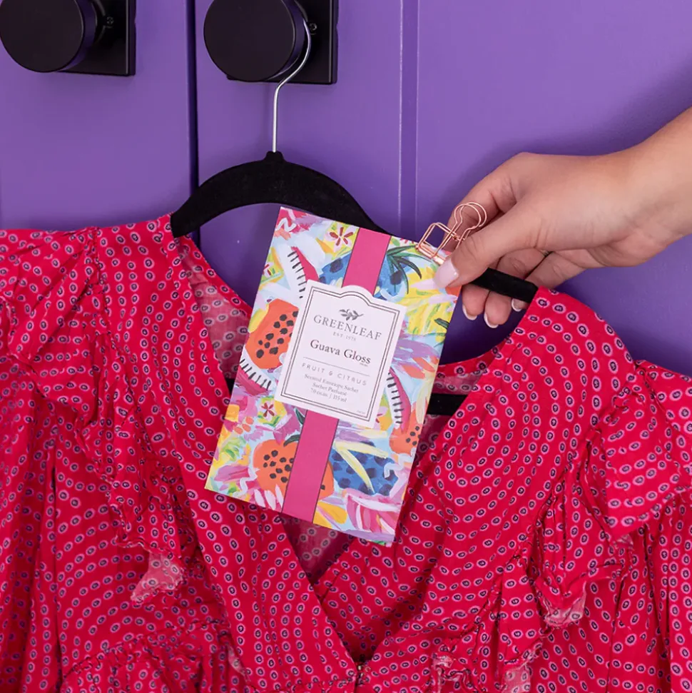 Grand sachet parfumé guava gloss 115 ml par Greenleaf. Glissez ce sachet dans la literie pour laisser un parfum enivrant sur vos serviettes de plage propres. Description du parfum : touches de mandarine et de pamplemousse mélangées à de la noix de coco. Guava Gloss est le parfum d’été tropical qu’il vous faut! Mode d’emploi : placez le sachet dans un placard, une armoire ou une pièce pour parfumer l’air ambiant.
