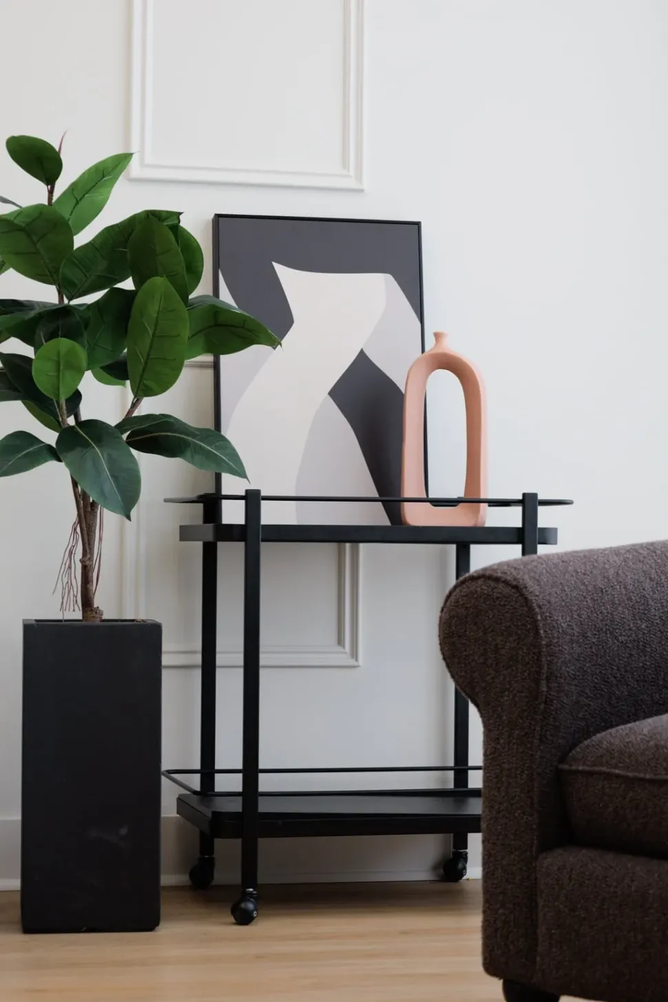 Graphic abstract wall art, 16 x 24''. If you want to decorate a white wall, but still want to keep a minimalist decor, choose this abstract print canvas! Other model in the same style is also available. Comes with black MDF frame.