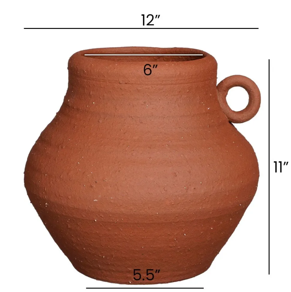 The terracotta material lends a timeless appeal to the vase, with its earthy tones and textured surface. Each vase is unique, bearing the marks of its handmade craftsmanship, which adds character and authenticity to its appearance.