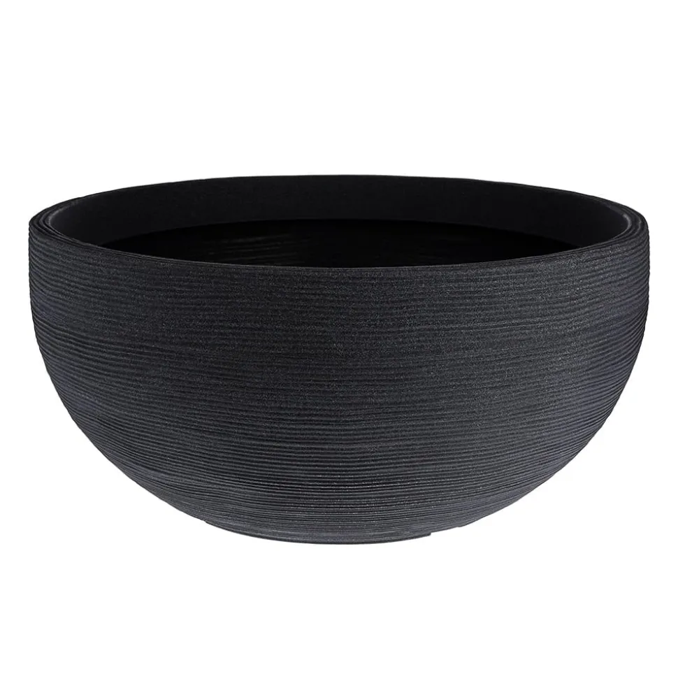 Jardinière en plastique nervuré noir, 11 x 23″. Profitez de tous les avantages du plastique sans devoir faire de compromis de style grâce à ce pot bas au fini nervuré permettant la création d’un superbe arrangement extérieur sur mesure! Fabriqué en plastique de type polyéthylène, un matériel rigide résistant. Vous pourrez l’utiliser en toute tranquillité sur une terrasse au soleil.