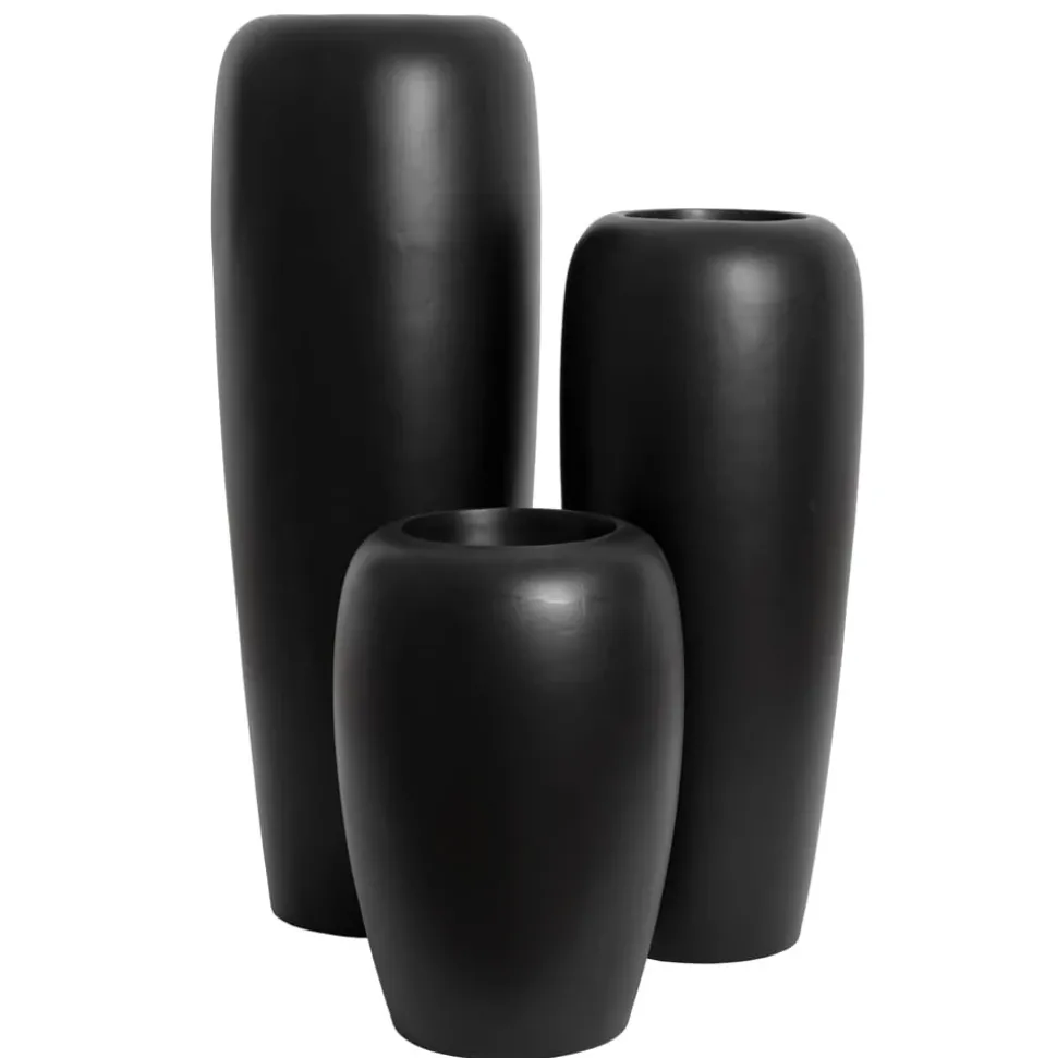 This spacious, versatile pot is ideal for large plants or voluminous floral arrangements, adding a contemporary touch to any decor. Make this black planter (which also doubles as a vase) the centerpiece of your decor! Made of high-quality fiberglass. Choose from 3 sizes (small, medium or large).