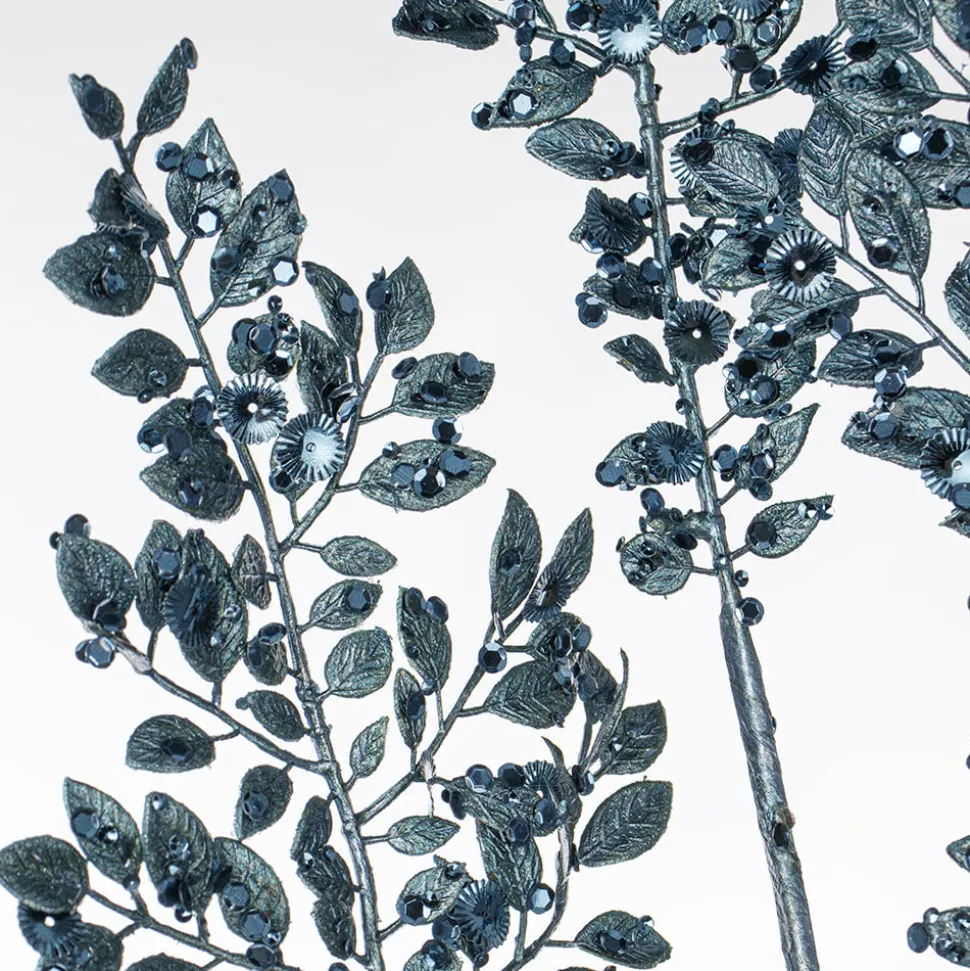 Midnight blue metallic leaf sequin spray, 33''. Adding artificial foliage to your Christmas decor brings diversity to your ornaments and completes your festive decoration. Product available in 4 different colors.