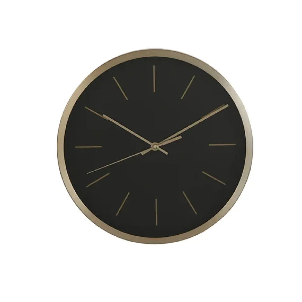Black contemporary wall clock with gold trim, 10 x 10″. When your decor is elegant, make sure your wall clock is too ! Other sizes and colors available.