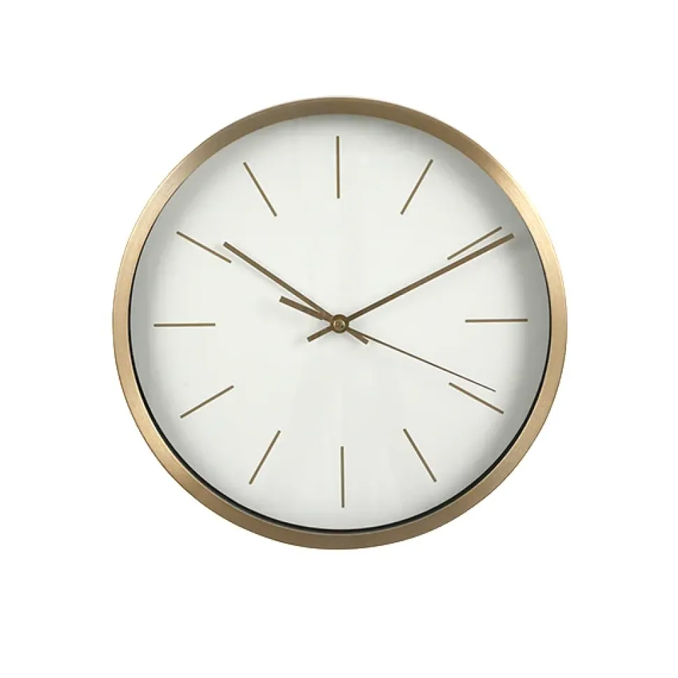 Contemporary white wall clock with gold outline, 10 x 10″. This clock without numbers combined with its golden color is without a doubt a modern decorative accessory! Other sizes and colors available.