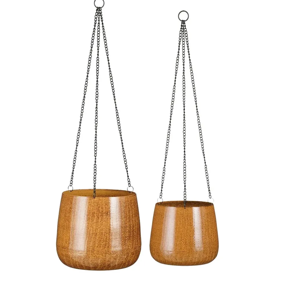 This hanging planter is a must-have for showcasing your favorite plants, whether leafy, flowering or hanging! With its contemporary design and rich color, this indoor hanging planter promises you the warmest of spaces!