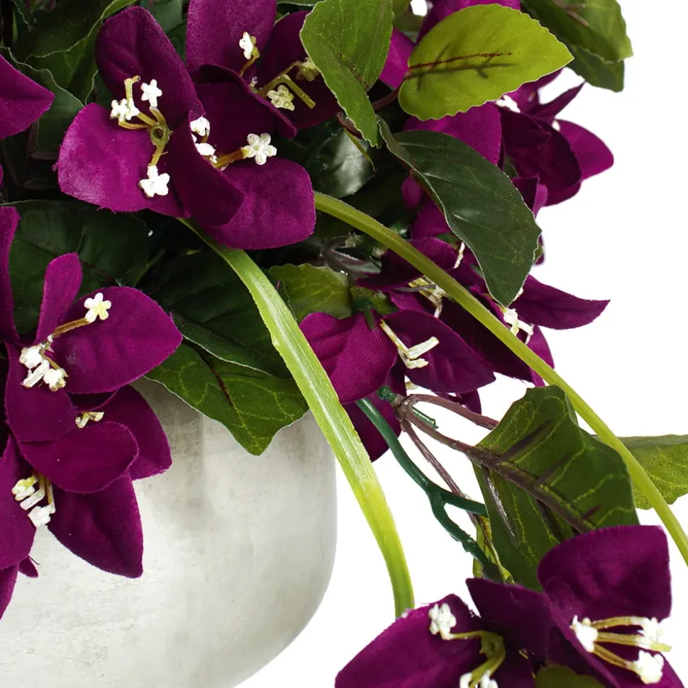 Outdoor purple flower centerpiece, 12 x 12″. Bring some color to your outdoor table, by adding this purple bougainvillea flower pot! Designed for outdoor use and treated against UV fading. Match it with a hanging planter or a standing flower arrangement. 1-year warranty against discoloration caused by UV rays. To protect your artificial flowers from the sun longer, spray them with a UV protector at the beginning of each season