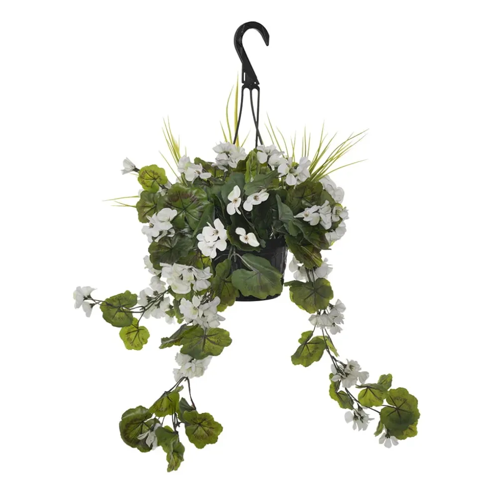 Outdoor hanging flower basket of white geranium, 18 x 16″. Transform your balcony into a real floral decor that will bring a touch of freshness to your exterior with the beautiful white blooming petals of this hanging basket flowers. You will not be disappointed by the quality of its visual appearance and it will guarantee you a lush decoration with a peace of mind!