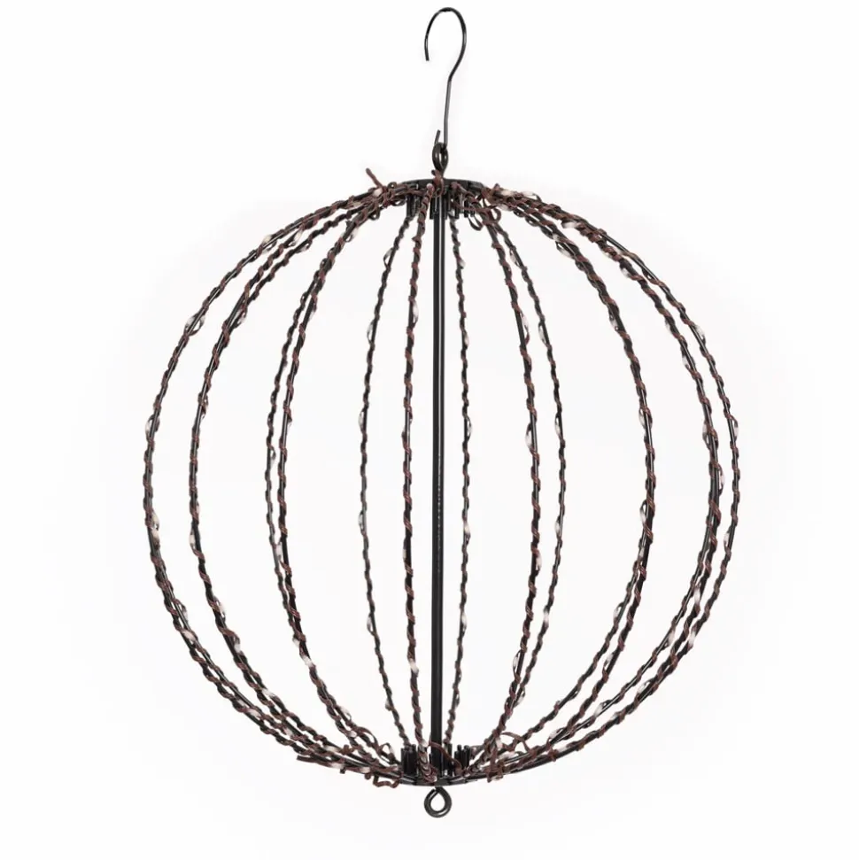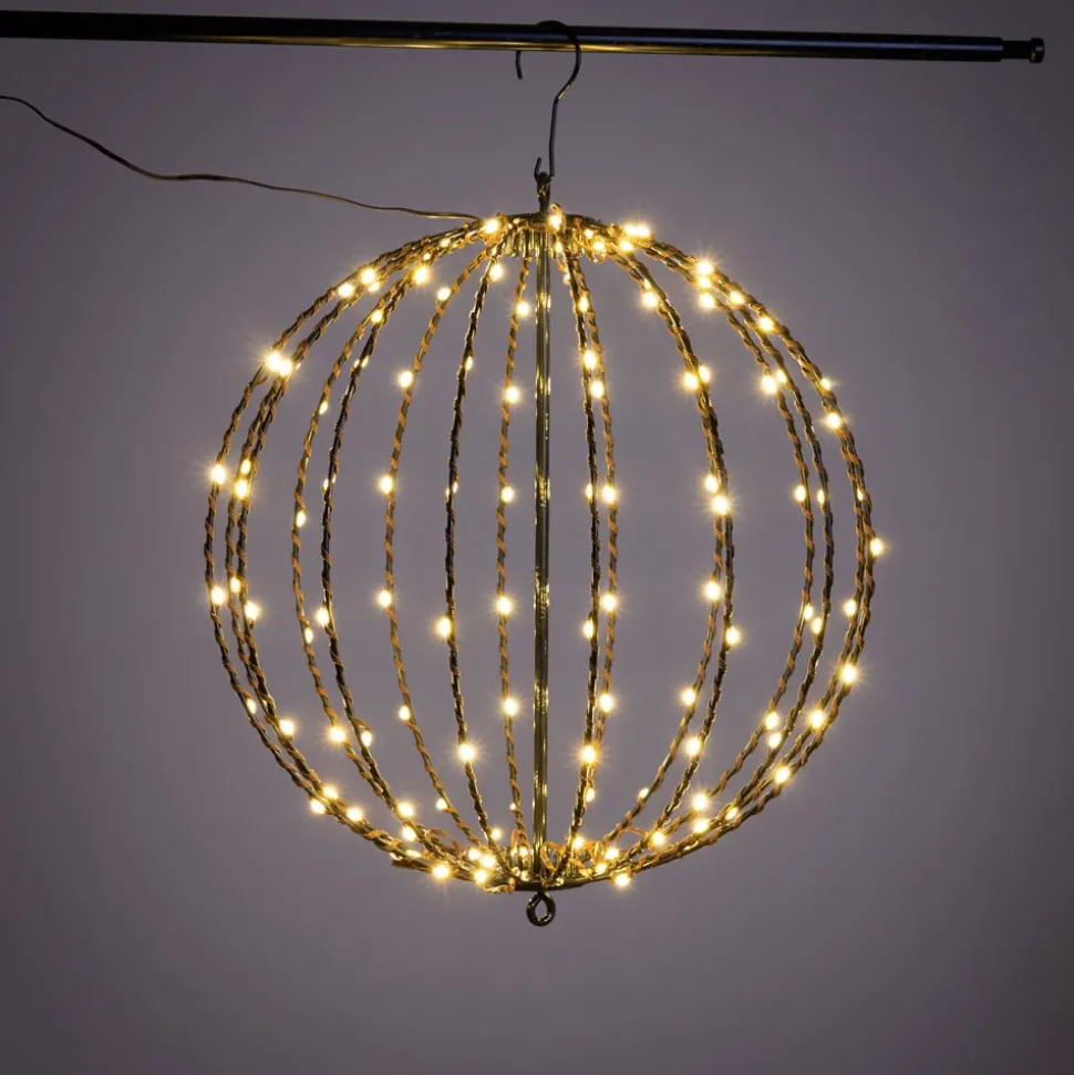 128 LEDs Christmas illuminated sphere, 15,5″. The metal frame of these eye-catching LED light balls gives a modern touch to every decor. This Christmas light ball is easy to hang from the ceiling thanks to its metal stake. Combine several light ball sizes in one display or fill the hollow centre with extra decorations like flowers, greenery, or ornaments. Classic warm white light. Other dimensions available.