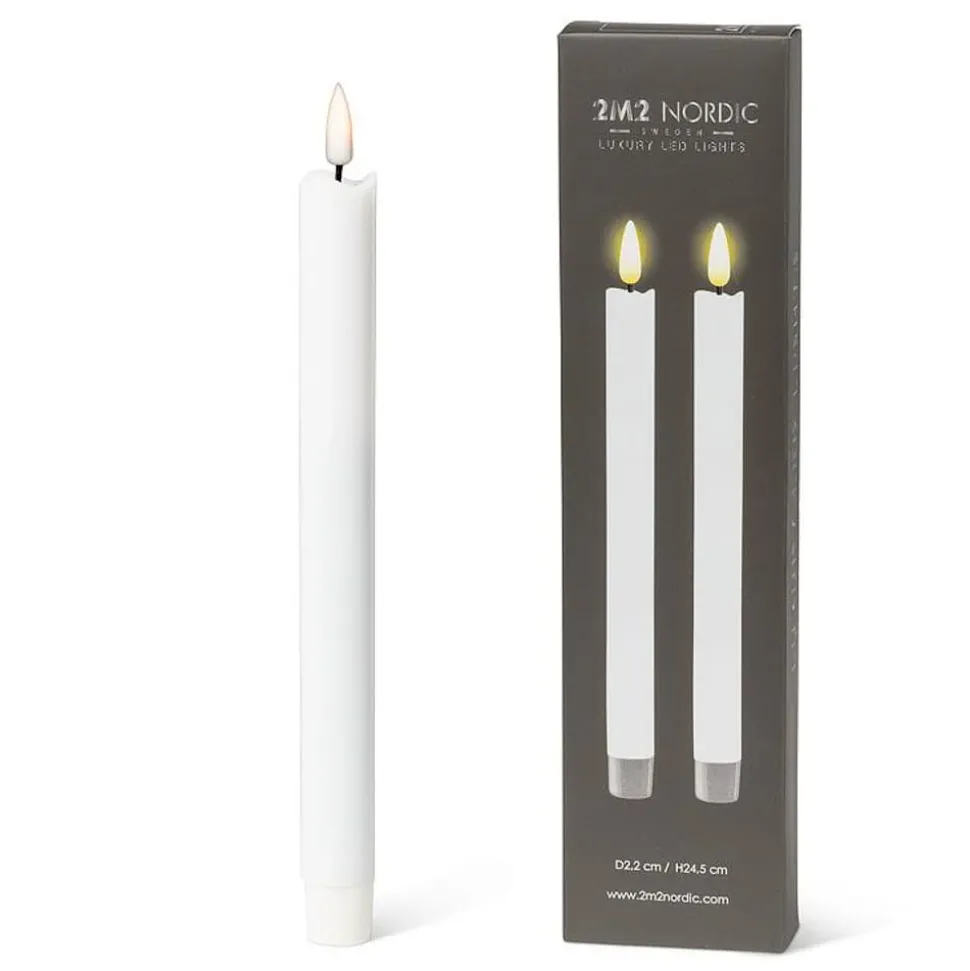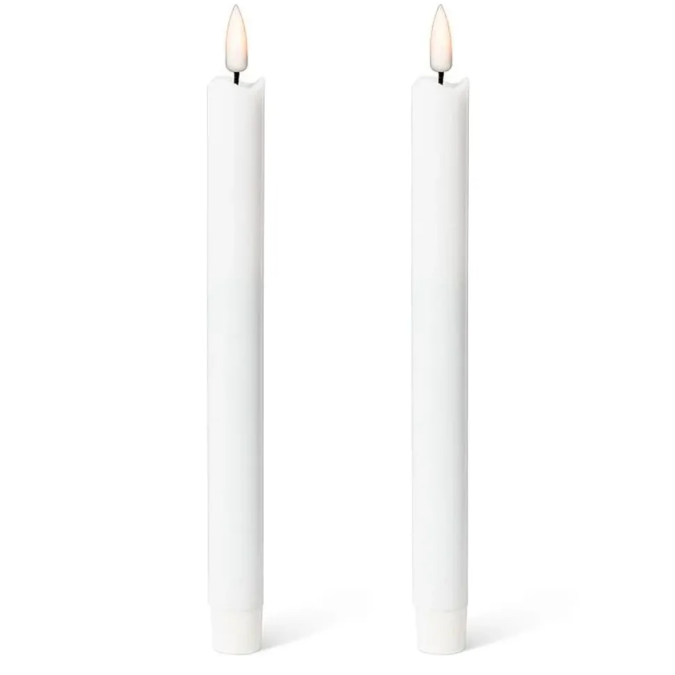 With this set of two white LED candles, enjoy the soothing vibe of candles without fear of fire hazards! These flameless candles are made entirely of wax, designed in Sweden and feature a 3D LED flame. Over 75 hours of autonomy. 8-hour timer. This candle, powered by two AAA batteries (not included), adds a discreet decoration to any setting, whether alone or in combination with others.