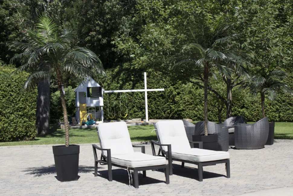 Palmier extérieur artificiel, phoenix, de 6 pieds de haut. Aviez-vous pensé à vous procurer un palmier artificiel à l’extérieur ? Vous pourrez ainsi le garder pour plusieurs étés à venir. Assurez-vous de vaporiser le spray UV sur votre plante artificielle extérieure à chaque début de saison pour allonger sa durée de vie. Également disponible en format de 9 pieds.