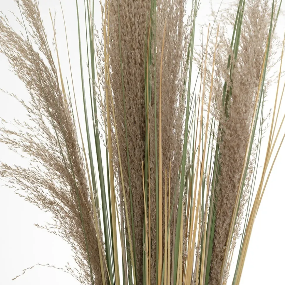 Pampas bouquet that can be easily planted in a floral foam inside a pot or an opaque vase. This plant is made of synthetic stems and real pampas reeds for a realistic look. Also offered in a larger size.
