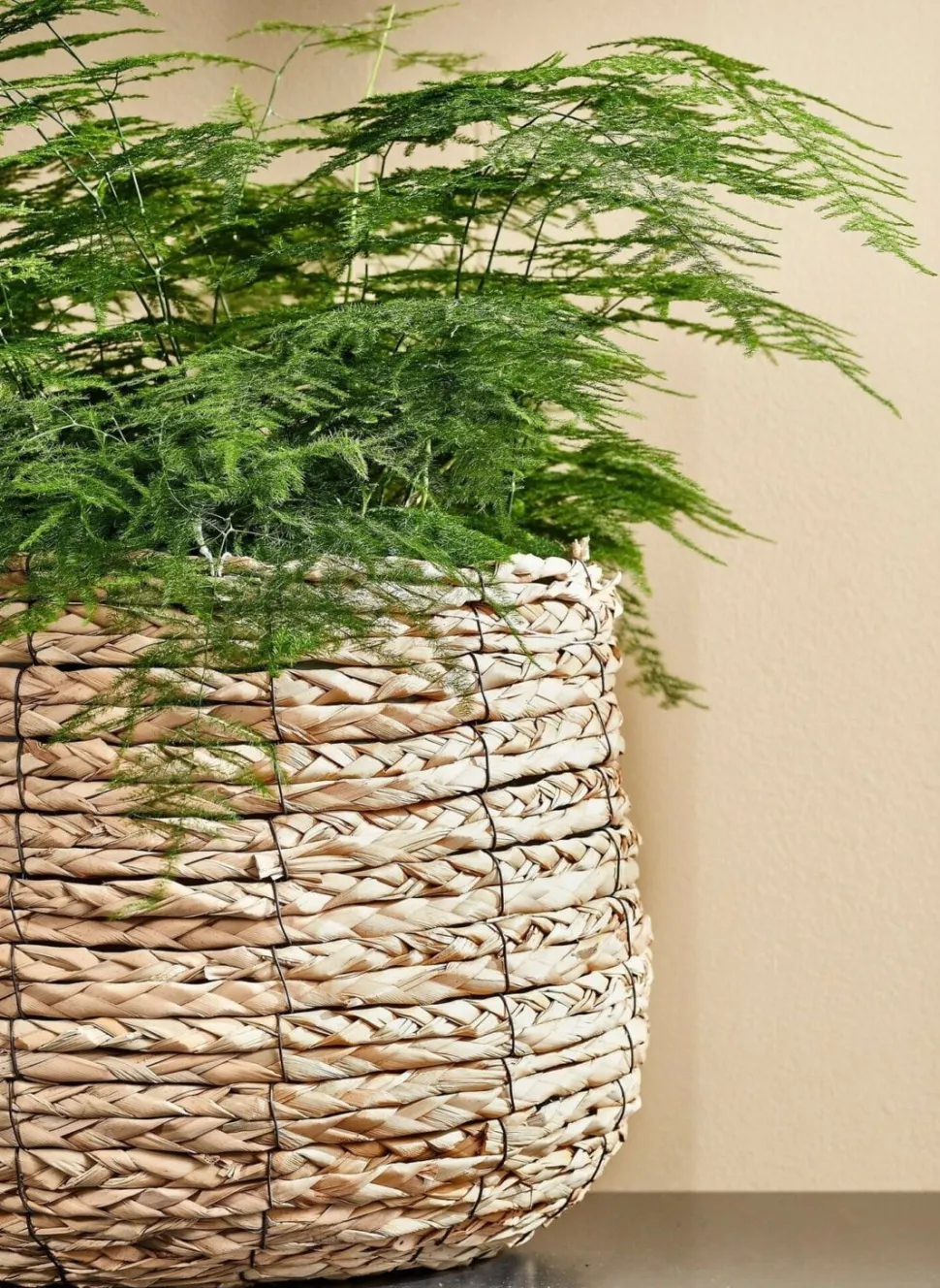 Ce panier tressé à la main, à partir d’herbes marines naturelles, est à la fois décoratif et pratique! Grâce à sa doublure en plastique, vous pouvez y mettre une plante artificielle, ou alors l’utiliser comme panier de rangement. Ajoutez cette pièce unique à votre décoration intérieure et profitez de l’équilibre parfait entre beauté et praticité qu’elle apporte à votre foyer.