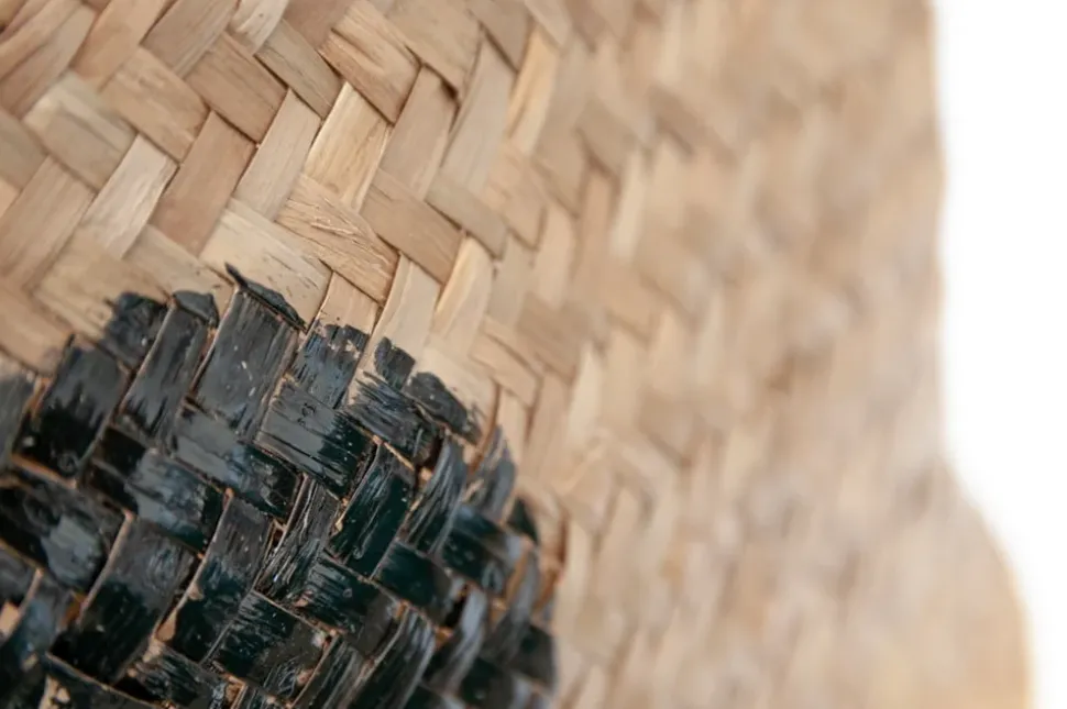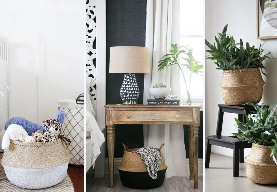 Panier en osier à pois noirs mesurant 18x16x16″. Les solutions de rangement n’auront jamais été aussi décoratives! Utilisez-le pour les peluches de votre tout-petit ou en guise de cache-pot pour votre plante verte favorite!