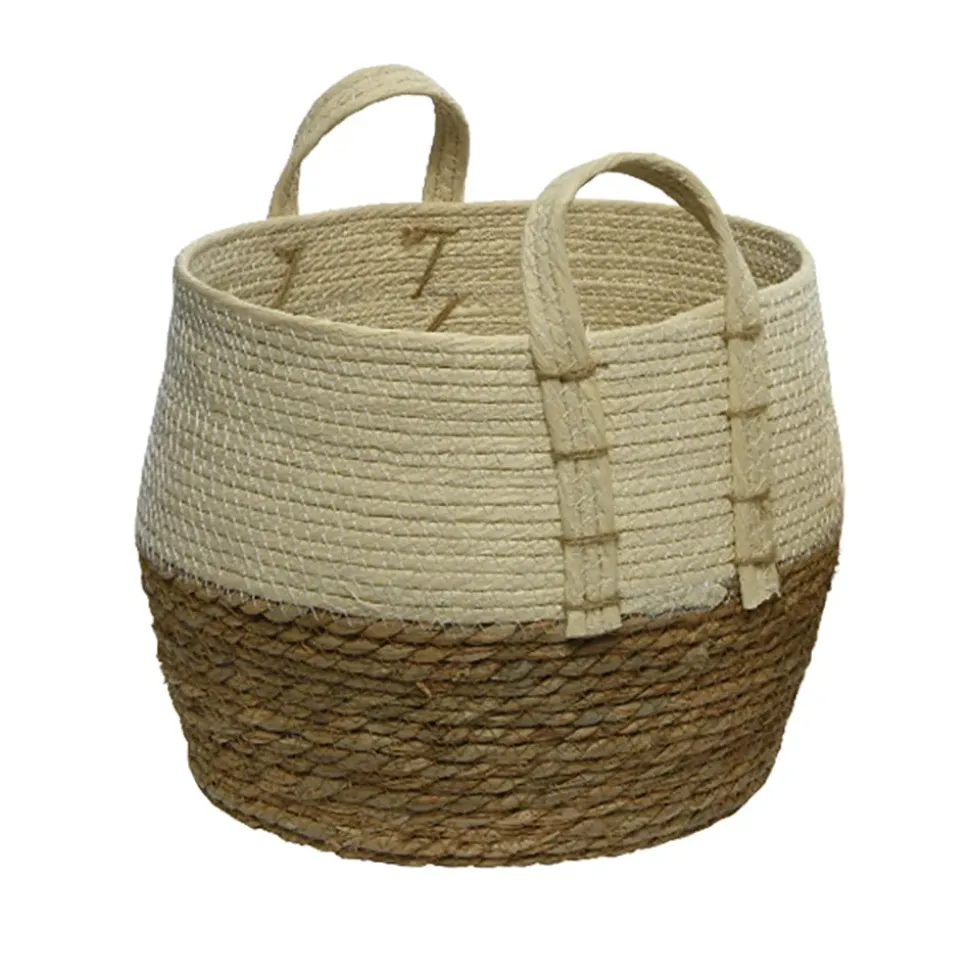 Panier tissé en feuilles de maïs, 10,5 x 13''. Ce grand panier décoratif peut autant servir de rangement que de cache-pot à votre plante d'intérieur artificielle ! Songez à un olivier ou un arbre de magnolia. Autres dimensions aussi proposées.