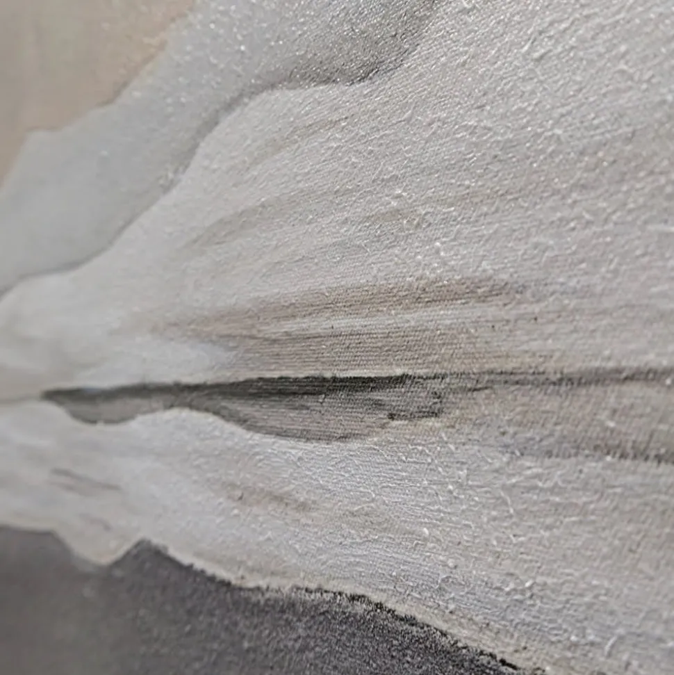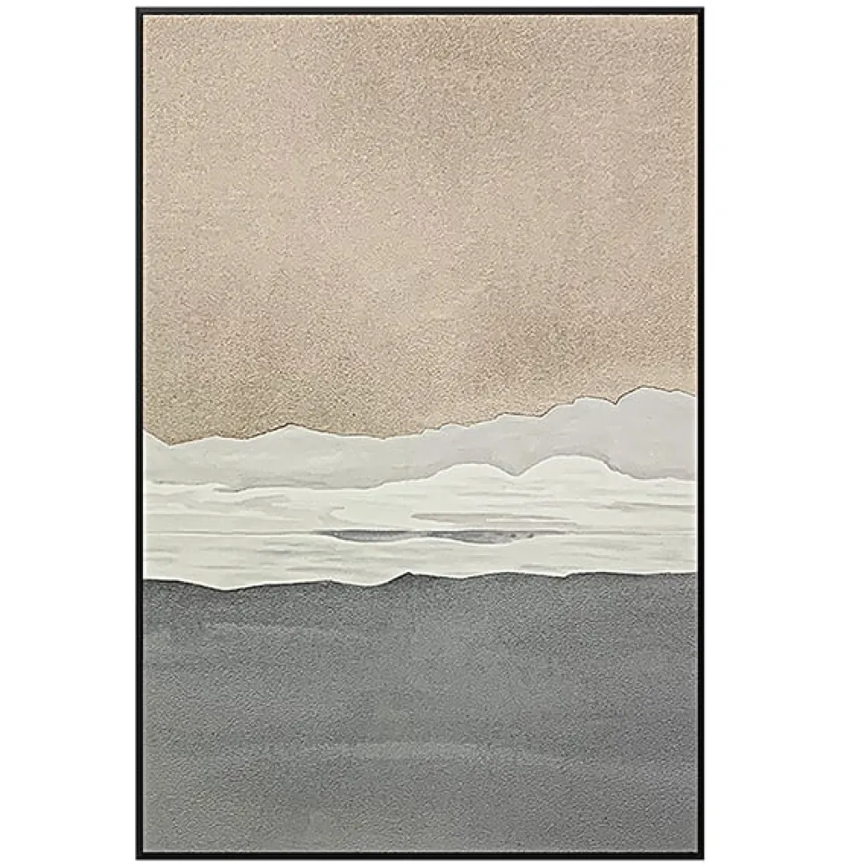 Peaceful beachfront wall art, 24 x 36''. Relax in a zen space with this beachfront painting featuring waves and beige sand! This wall art is printed on a canvas with painted details for a realistic finish. Comes with black MDF frame.