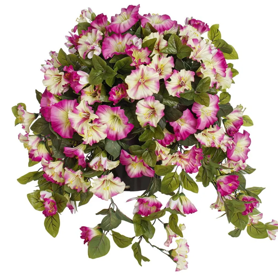 Pétunia en pot de culture noir, 28 x 20″. La couleur rose et ivoire de ces fleurs artificielles d’extérieur est superbe ! Sur votre table de patio, elles seront fantastiques. Résistantes à la décoloration des rayons UV, elles sont conçues pour être utilisées à l’extérieur. Il suffit de les ajouter dans le pot de votre choix.