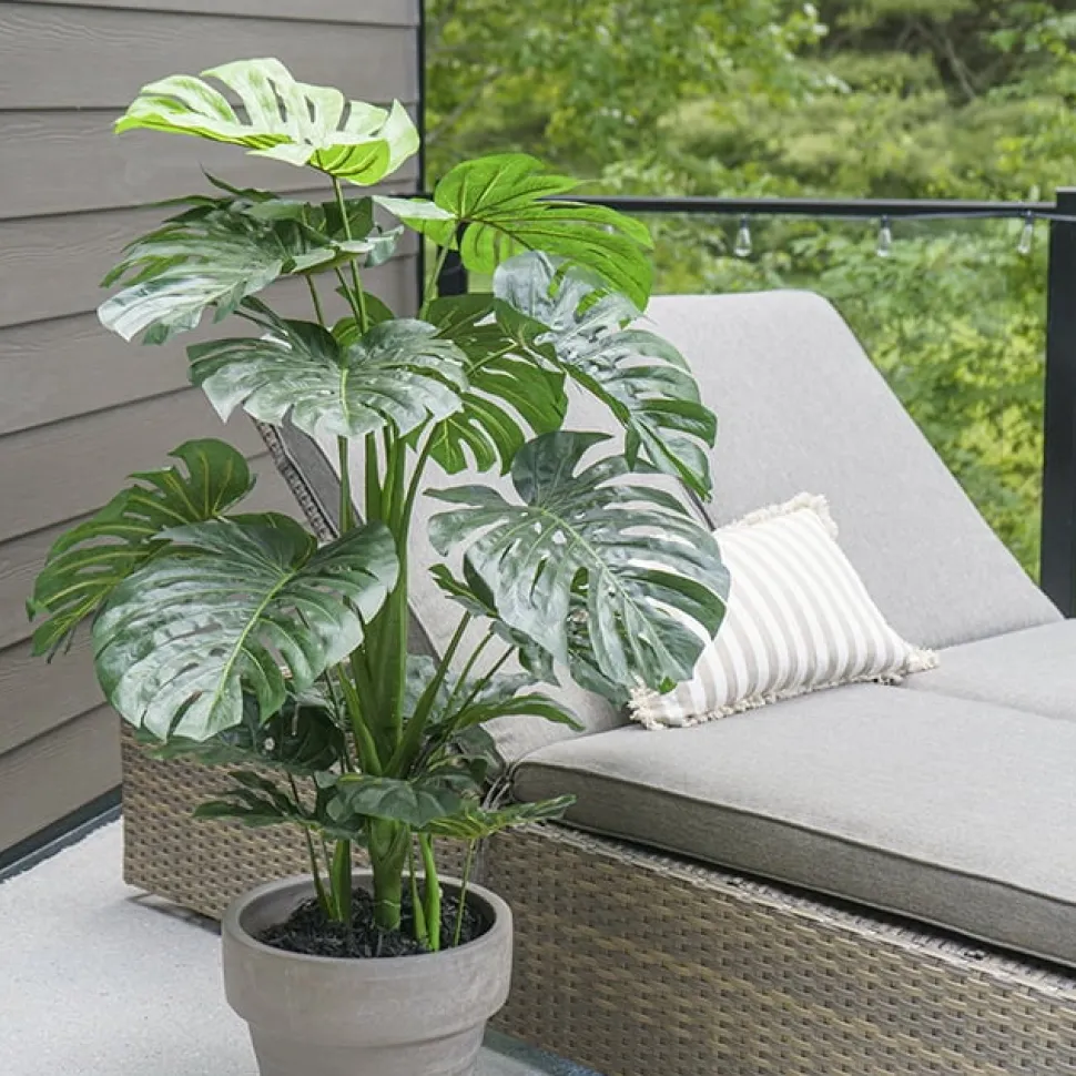 Plante artificielle extérieure, monstera, 48″. Ce monstera de 4 pieds est un coup de coeur pour les solariums ou les terrasses, afin d’obtenir un décor tropical ! Pour prolonger sa durée de vie, vaporisez un protecteur UV à chaque début de saison.
