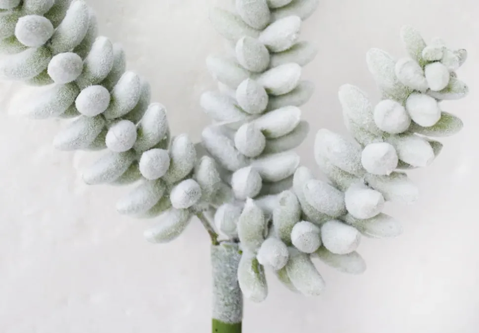 Plante grasse vert de gris sur tige de 11″. Aussi disponible en couleur prune.