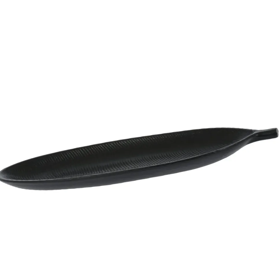 Plateau noir en forme de feuille, 15,5 x 6″. Utilisez-le pour porter votre baguette de pain avec élégance, lors de votre repas du temps des Fêtes ! Vous pourrez bien sûr l’utiliser comme centre de table même après vos célébrations, en guise de décoration tendance.
