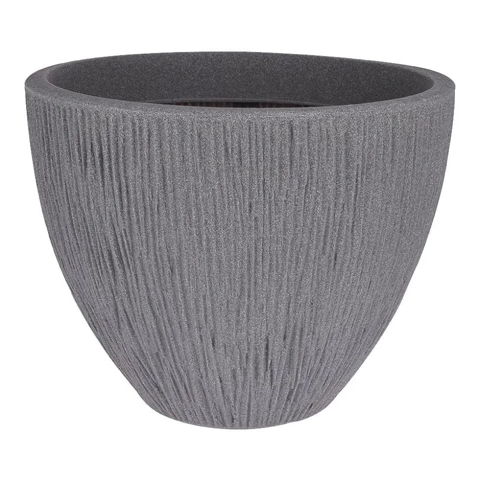 Pot extérieur nervuré gris, 12 x 12″. Donnez à votre plante d’extérieur son plein potentiel en la disposant dans un cache-pot décoratif qui saura en faire l’un des principaux attraits sur la terrasse! Fabriqué en plastique de type polyéthylène, un matériel rigide résistant. Vous pourrez l’utiliser en toute tranquillité sur une terrasse au soleil.